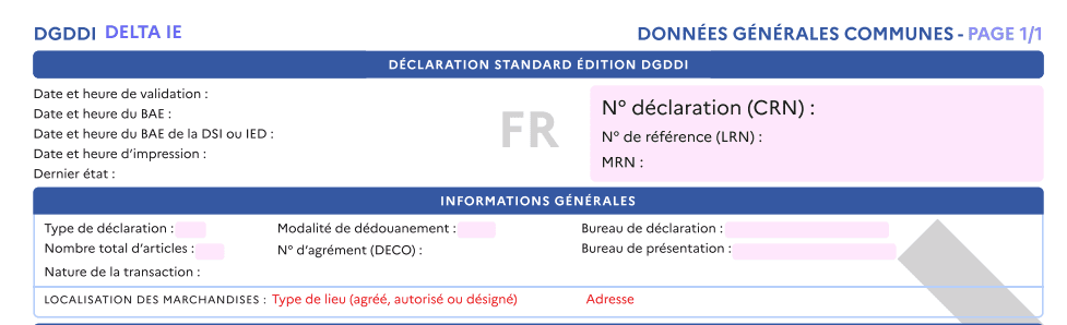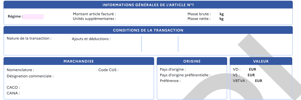 Cette rubrique regroupe les informations obligatoires devant figurer sur la déclaration en douane. Elle peut notamment préciser :