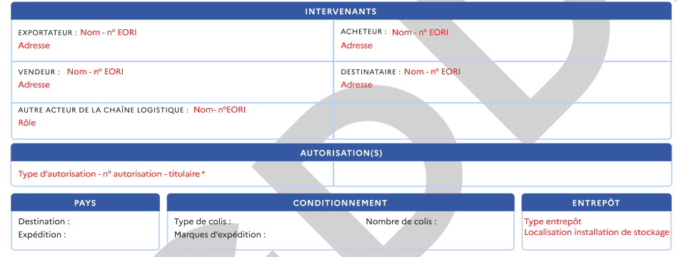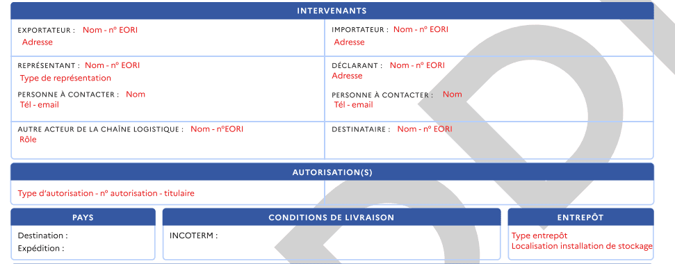 Dans la rubrique Intervenants figurent les différents acteurs impliqués dans l’opération d’importation ou d’exportation.